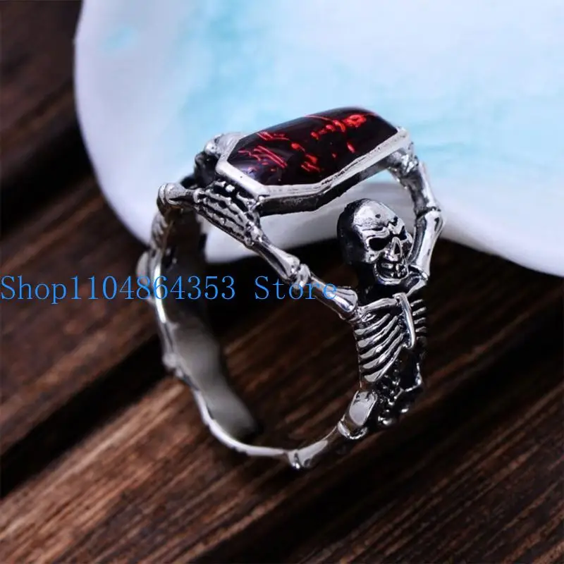 652F Skull for Head Shaped Metal Texture Rings Punk Rings Hip-hop Men Women Jewelry Rings Movie Accessories Alloy Mater
